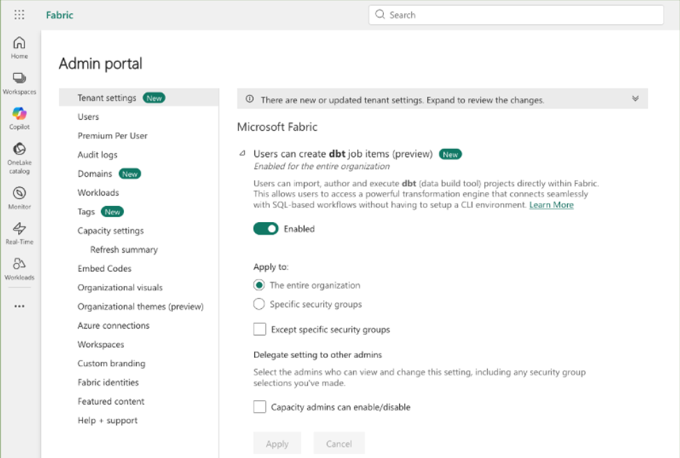With dbt jobs now running natively inside Microsoft Fabric, that fragmentation disappears. dbt is no longer an external tool bolted onto the modern data estate, it is now a first‑class, integrated capability of Fabric, providing a unified experience for modeling, testing, scheduling, and monitoring transformations directly inside Fabric workspaces.